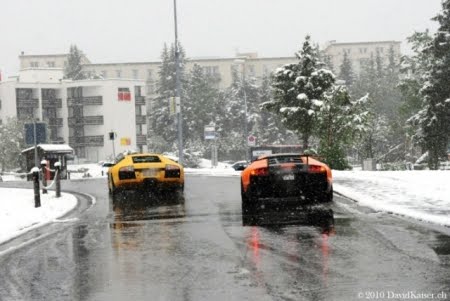 Lamborghini owners, mainly in Europe, have gathered on St. Mortiz, Switzerland, to jointly make excursions over the famous Alps.